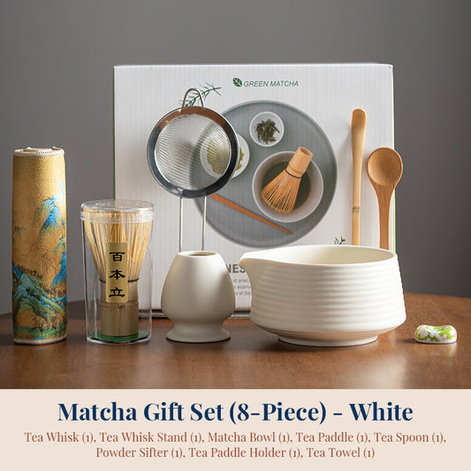 Premium 8-Piece Matcha Tea Set – Ceramic Chawan Bowl & Whisk Gift Box