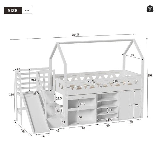 - SPACE-SAVING: The bed is equipped with drawers and storage cabinets that effectively utilize space and provide children with additional storage space for toys, books, and clothes, thus keeping the room organized.