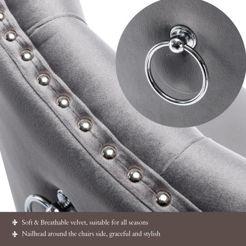 Product Name:Velvet Dining Chairs Set of 2 with OAK Legs, Button, Chrome Knocker and Nailhead Trim Bedroom Chair Kitchen Chair Living Room Lounge Leisure Chair (grey, 2pcs)