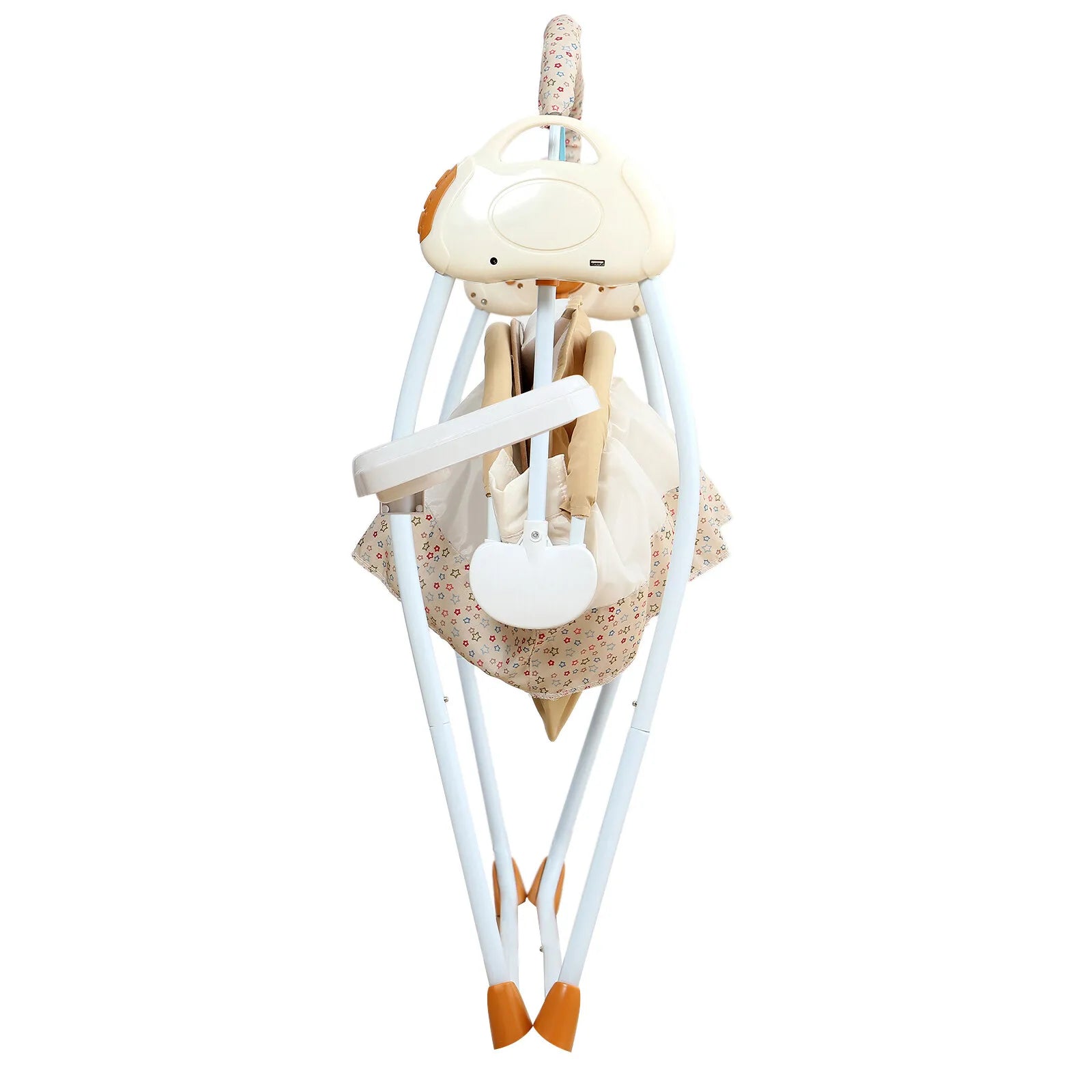 It can be used to coax your baby to sleep and quiet your crying baby indoors and outdoors. It is also suitable for playing and listening to songs and stories in this baby cradle swing.