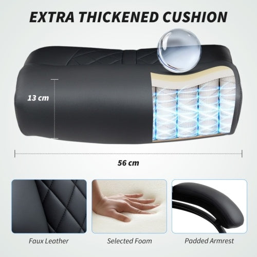 - Super padded, covered with faux leather: Spring pocket filled, with a 13 cm seat and 16 cm back - executive office chair is extremely comfortable. Love using it all day long. Faux leather is stylish and easy to clean.